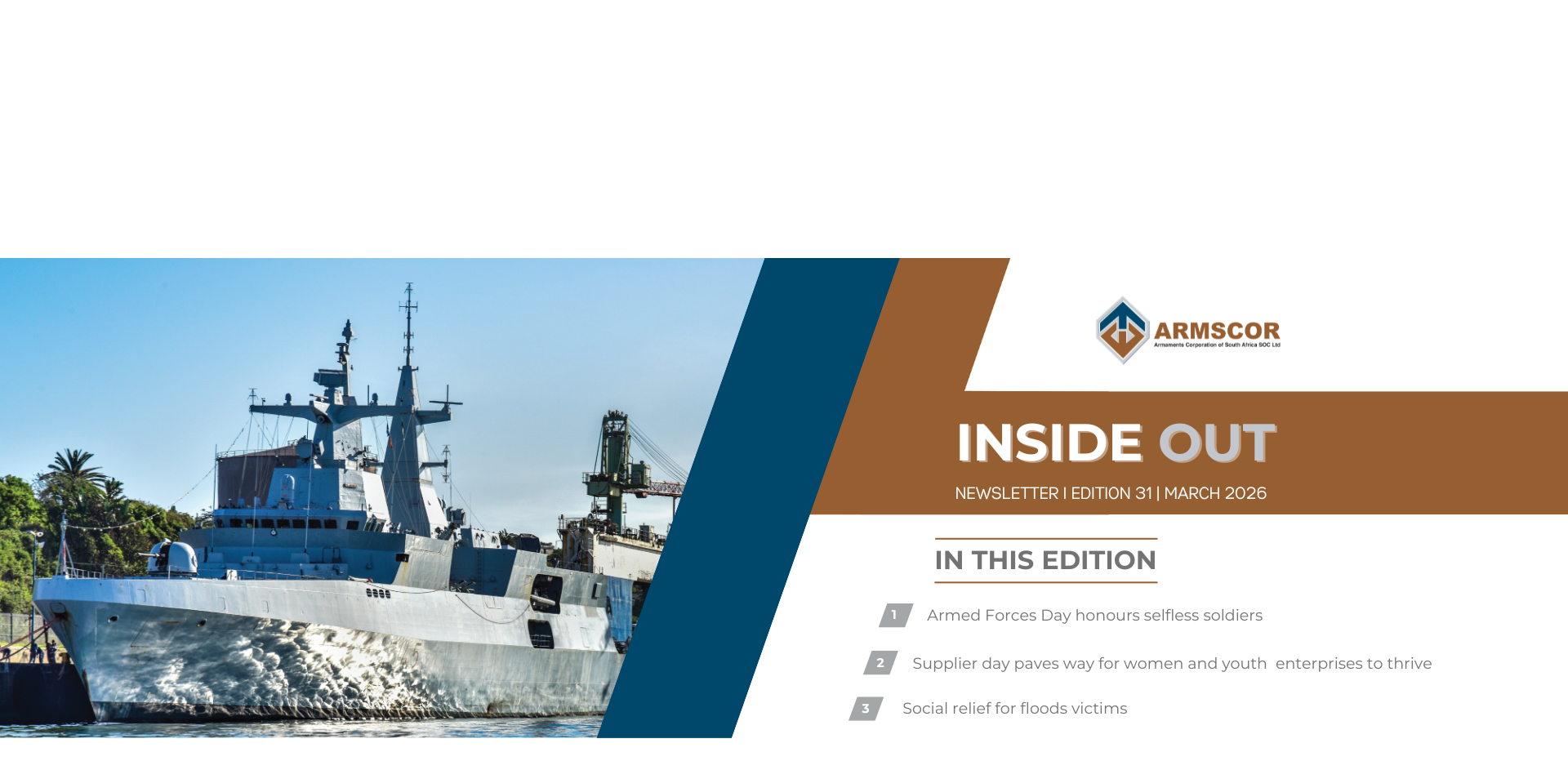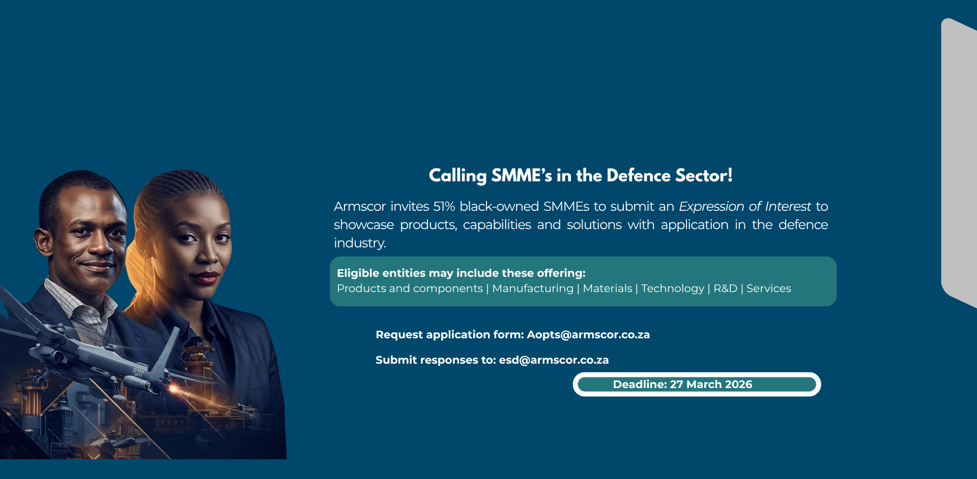 The Armaments Corporation of South Africa (Armscor) provides cutting-edge defence acquisition, logistics and research support to the SANDF and other clients. Enabling national security through smart acquisition, innovation and strategic partnerships.